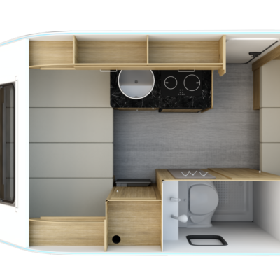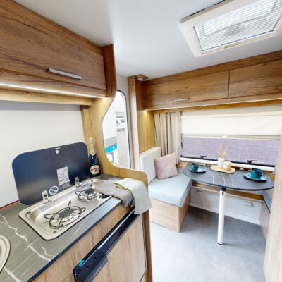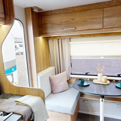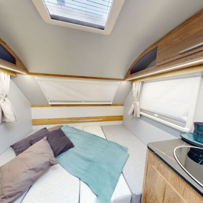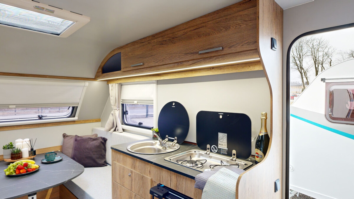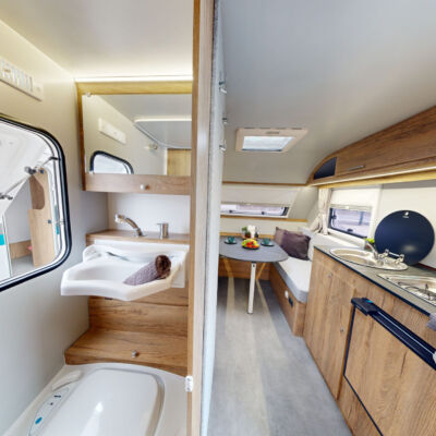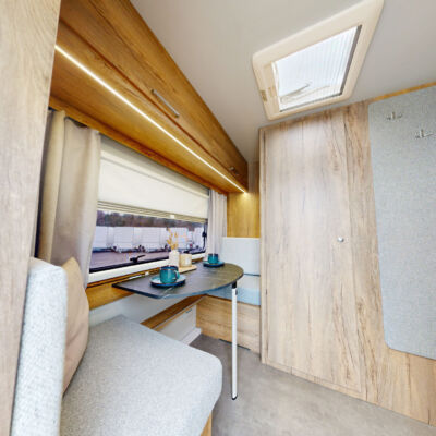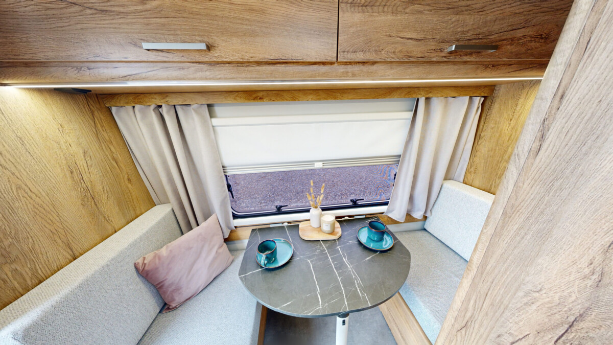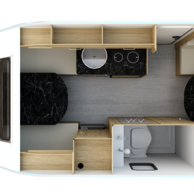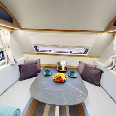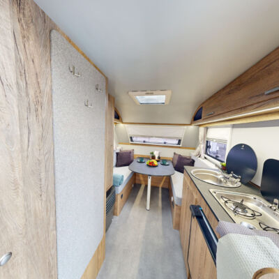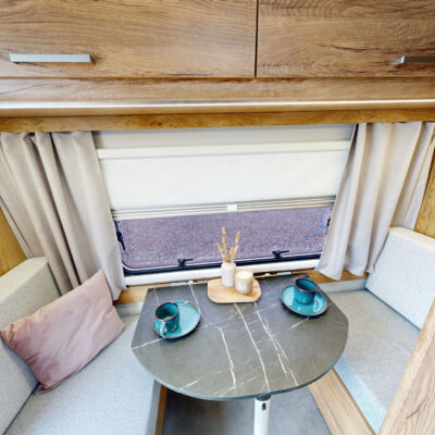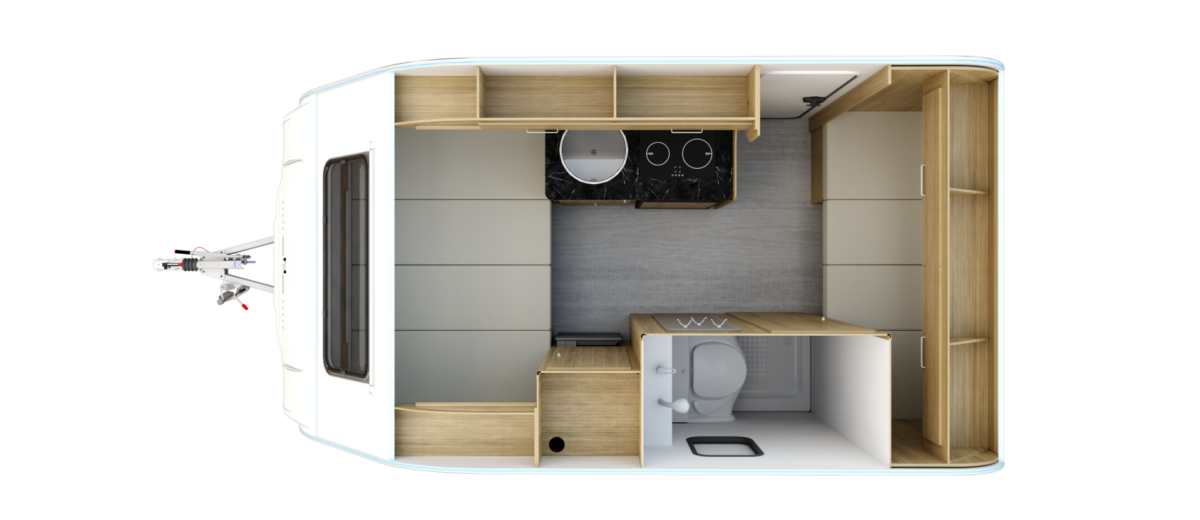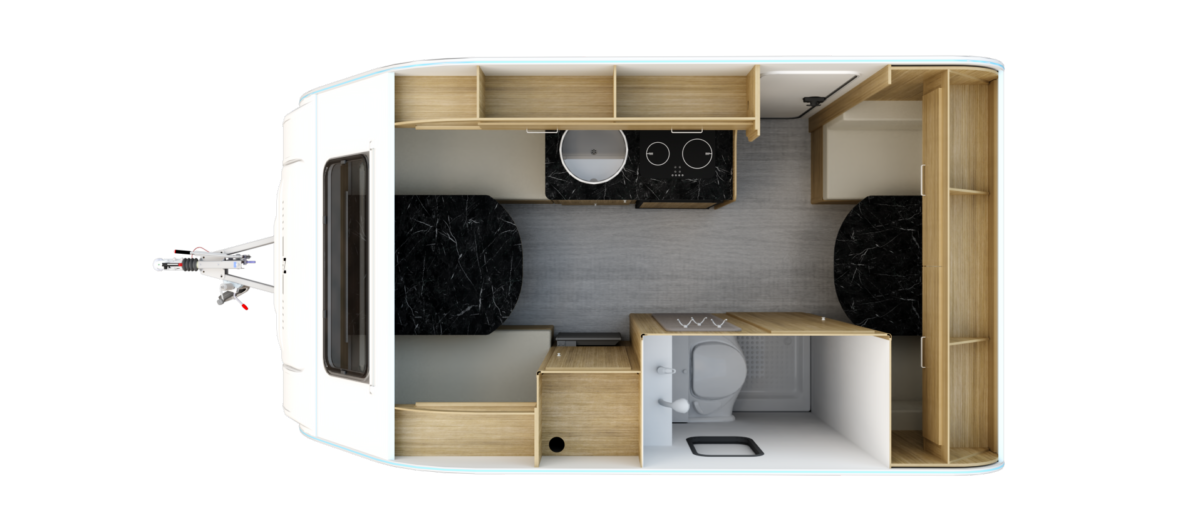 Het grootste model caravan dat we produceren, gebouwd van geïsoleerde sandwichpanelen, waarvan het moderne interieur plaats biedt aan een gezin van drie personen. De uitgebreide standaarduitrusting van de caravan zorgt voor een hoog comfortniveau, en dankzij de vele optionele extra's vindt elke klant de ideale oplossing voor zichzelf. In het woongedeelte van de caravan staat een tafel die kan worden omgebouwd tot een tweepersoons slaapplaats, in het achterste gedeelte staat een kleine tafel die kan worden omgebouwd tot een eenpersoons slaapplaats. De caravan is uitgerust met een toilet en douche met boiler en douchebak en keukenapparatuur zoals een gasfornuis, koelkast en gootsteen.