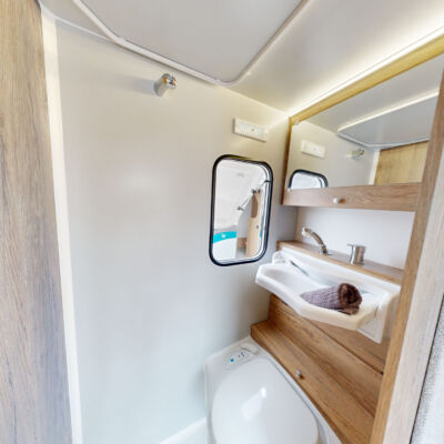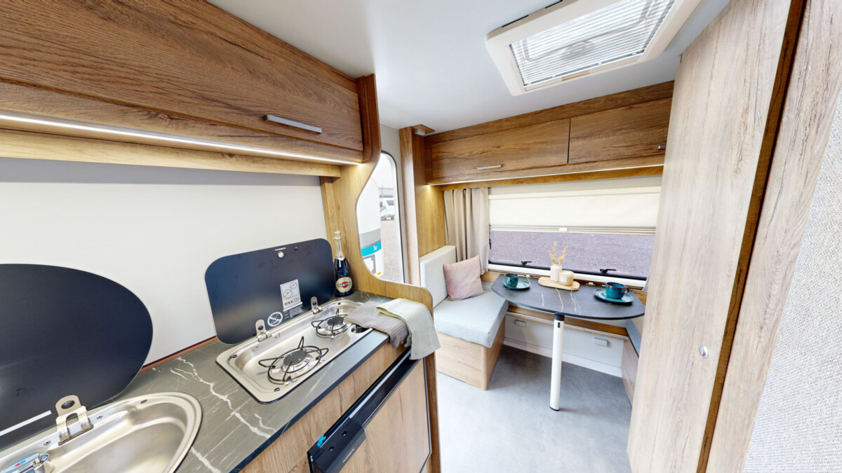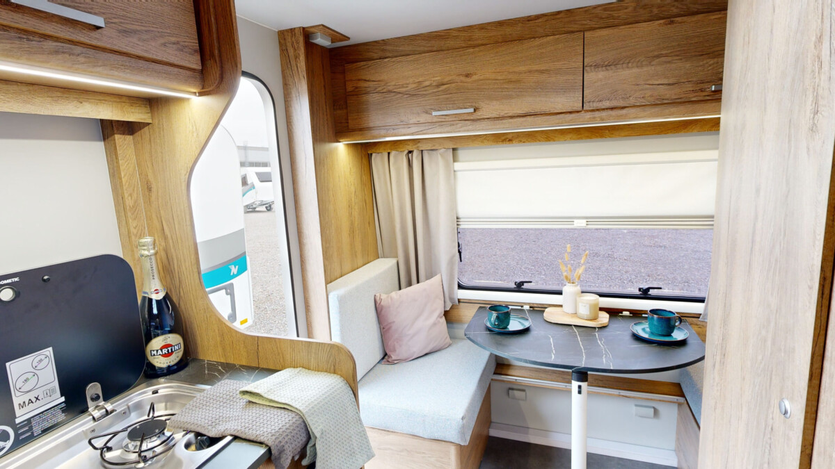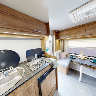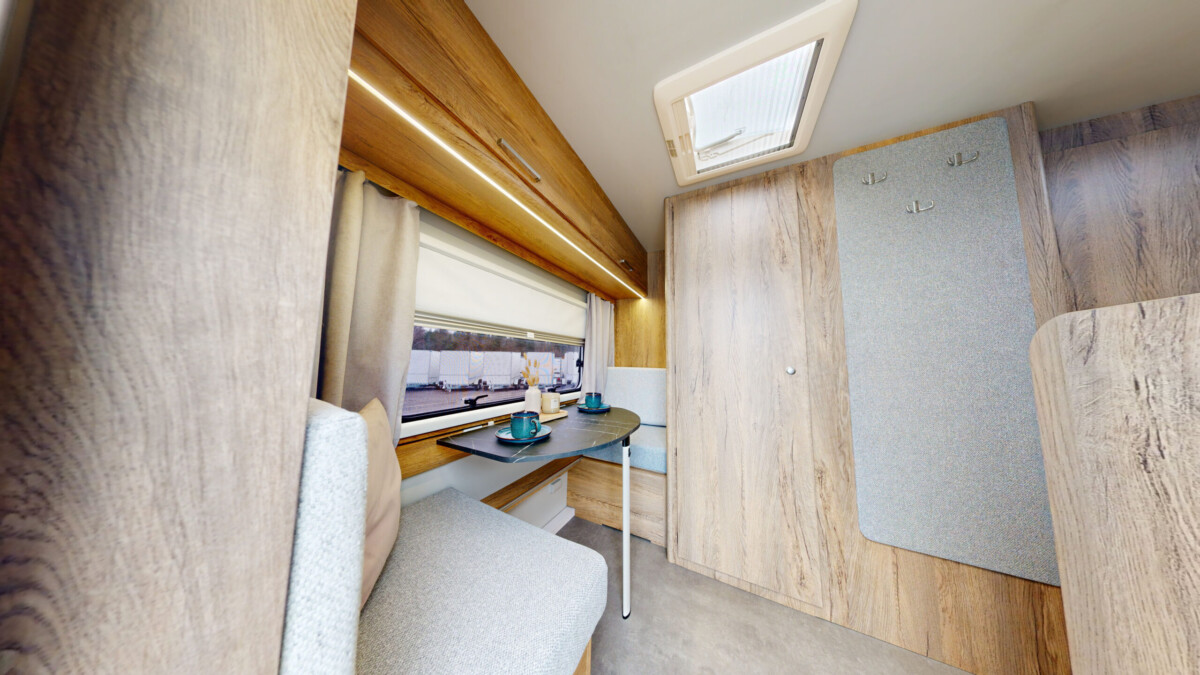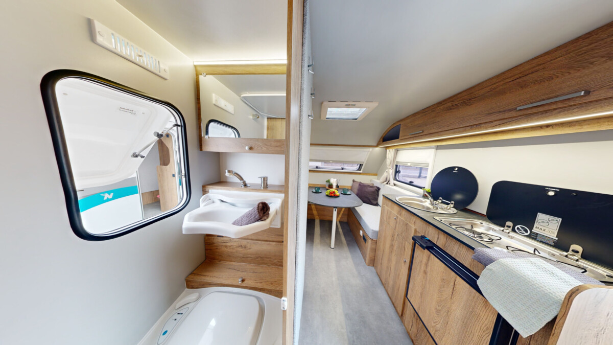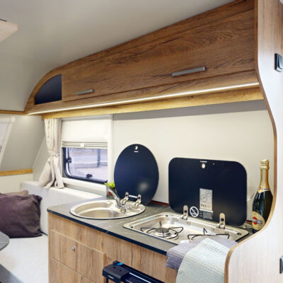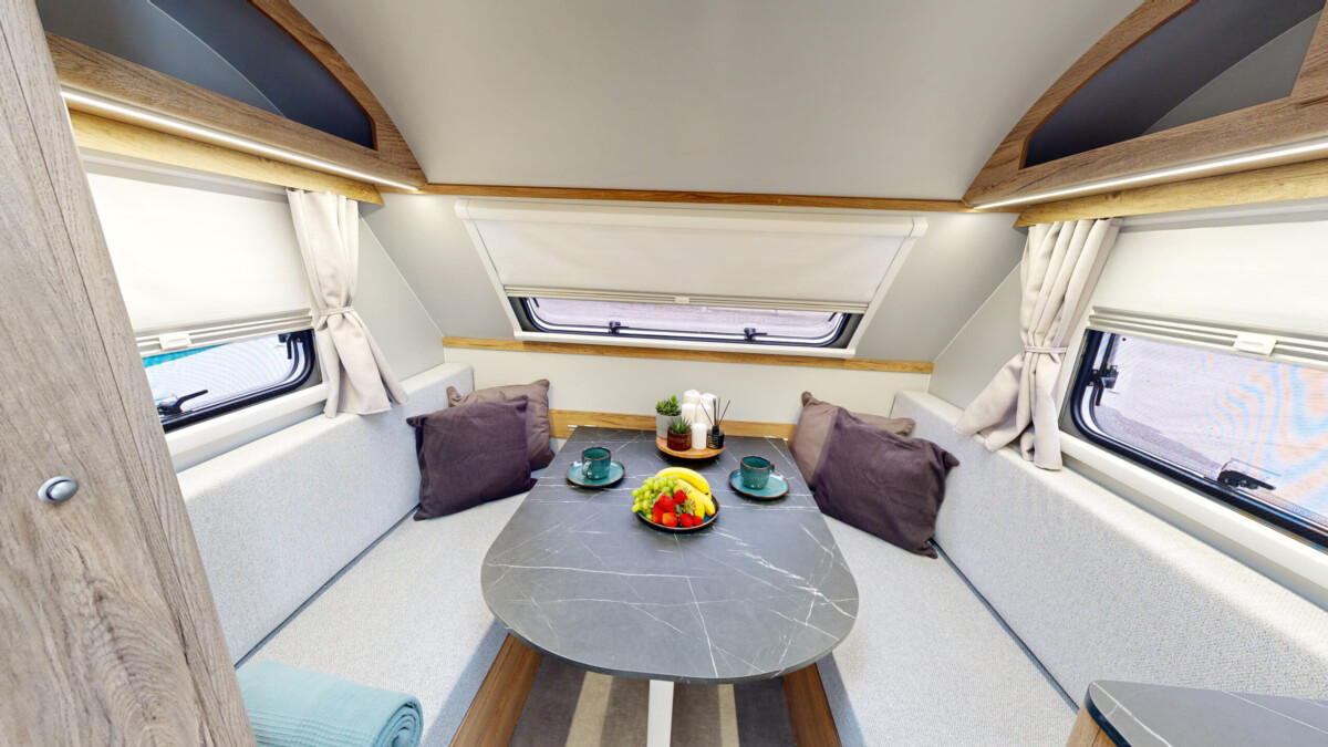 Het grootste model caravan dat we produceren, gebouwd van geïsoleerde sandwichpanelen, waarvan het moderne interieur plaats biedt aan een gezin van drie personen. De uitgebreide standaarduitrusting van de caravan zorgt voor een hoog comfortniveau, en dankzij de vele optionele extra's vindt elke klant de ideale oplossing voor zichzelf. In het woongedeelte van de caravan staat een tafel die kan worden omgebouwd tot een tweepersoons slaapplaats, in het achterste gedeelte staat een kleine tafel die kan worden omgebouwd tot een eenpersoons slaapplaats. De caravan is uitgerust met een toilet en douche met boiler en douchebak en keukenapparatuur zoals een gasfornuis, koelkast en gootsteen.